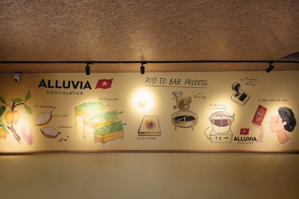 Trong dòng chảy ấy, Alluvia Chocolatier lựa chọn vai trò là người gìn giữ và tiếp nối. Thông qua mô hình “bean to bar” và việc sử dụng ca cao được trồng tại quê nhà Tiền Giang, Alluvia không chỉ tạo ra những thanh socola thủ công, mà còn kể lại câu chuyện lịch sử socola Việt Nam theo một cách nguyên bản, chậm rãi và đầy tôn trọng. Mỗi sản phẩm là sự kết tinh của đất, khí hậu, con người và thời gian.